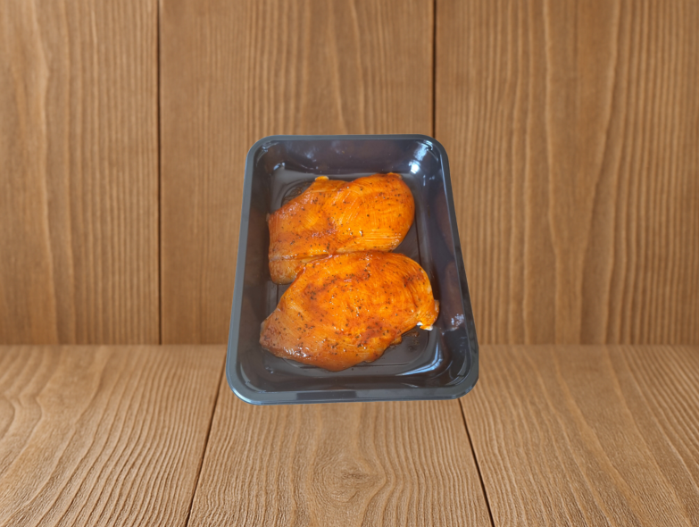 - Kipfilet lapje gemarineerd met een roodkleurige marinade met een pittige smaak